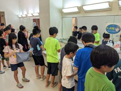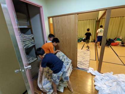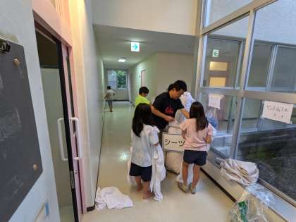 歯を磨いたり、布団をたたんだり、シーツを返したり。荷物の整理もしておかないといけません。宿泊学習の朝は時間との戦いです。