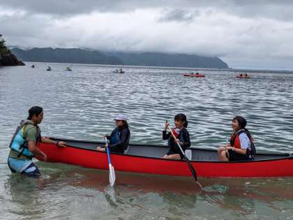 思った通りの方向に船を動かすのは、結構難しかったようで、苦戦している子どもたちがたくさんいましたが、だんだん慣れてきてスムーズに動かせるようになってきました。