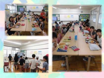 今週の水曜日に6−1、金曜日に6−2で、食の指導をし、ランチルームで給食を食べました。