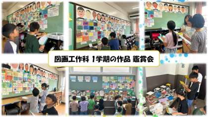 図画工作科では、1学期に取り組んだ作品の鑑賞会を学年で行いました。