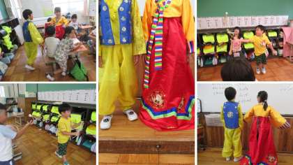 民族衣装のチマチョゴリ パジチョゴリも実際に着させてもらいました。