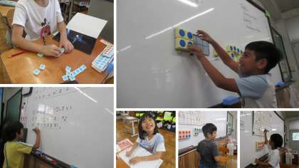 繰り上がりのあるたし算で10のまとまりに慣れたのか、ブロック操作もお手の物でした。