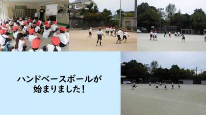 体育では、ハンドベースボールが始まりました。ルールを確認し、それぞれチームにわかれて試合をしました。これから学習を進めていき、ルールや進め方に慣れ、工夫して試合ができていくとさらに楽しくなっていくだろうなと思います。