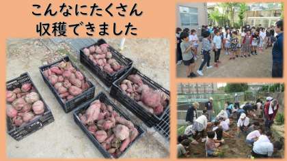 たくさん植えたので、1・2年生で協力して収穫しました。