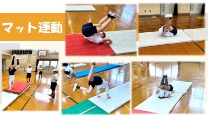 マット運動に対して、苦手意識がある子もいるようで、授業が始まる前は、「怖いな」「痛くないかな」などと心配そうな声も聞こえてきましたが、授業を終えて教室に帰ってくると、「先生、今日は倒立前転ができたよ」「倒立ブリッジがもう少しでできそう」などと、挑戦してきたことを教えてくれました。
