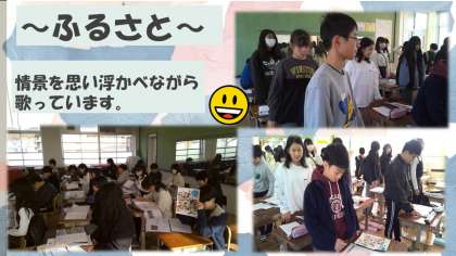 音楽科の学習では、情熱大陸の合奏とふるさとの歌唱を行っています。