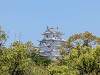 鶉野飛行場跡から約1時間で、姫路城に到着です。空の青さと新緑に天守閣が映えています。まずはお弁当タイムです。