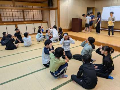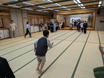 夕食のあとは大広間でみんなでゲームをしました。大盛り上がりで、楽しい夜はあっという間に過ぎていきました。