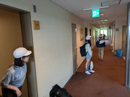 自分たちがつかわせていただいた部屋をきれいにして、出発の準備をしています。忘れ物のないように、残すのは感謝の気持ちだけ、です。