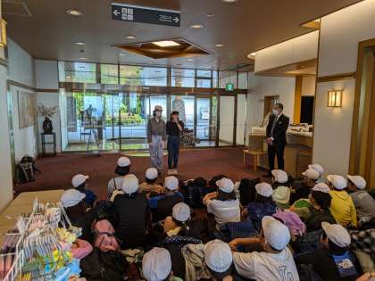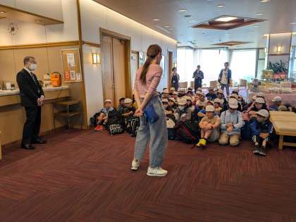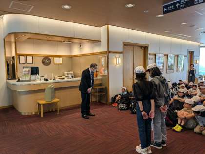 あっという間に出発の時間を迎えました。景色もきれいで、ご飯もおいしくて、大満足でしたね。お世話になったホテルの方にお礼を伝えて、これから四国水族館に向かいます!