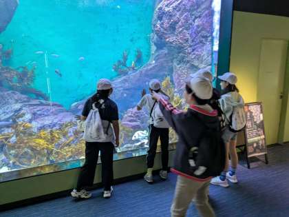 グループごとに館内を見て回ります。どんな海の生き物に出会えるかな?