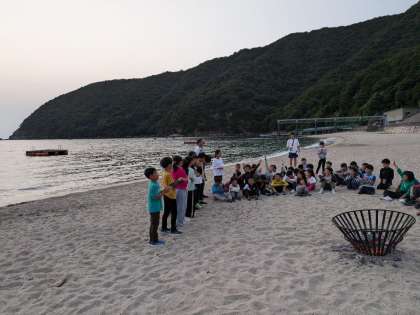 あんなに大きかった火も小さくなり、楽しかった時間も終わりを告げようとしています。振り返りをしている時の波の音が、最後の静かさをより際立たせていました。大成功のキャンプファイヤーでした。