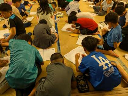 キャンプファイヤーのあと、お風呂に入って、最後に今日の振り返りをしました。いい天気のなか、外での活動だったので疲れていると思います。しっかり休んで明日に備えてくださいね。おやすみなさい。