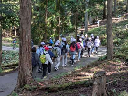 昼食のあと、夜のナイトハイクの下見に来ています。気温も15度近くまであがり、秋晴れの澄んだ空気がとても心地よいです。
