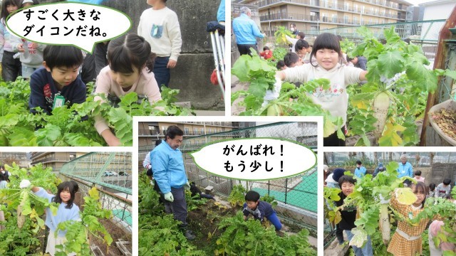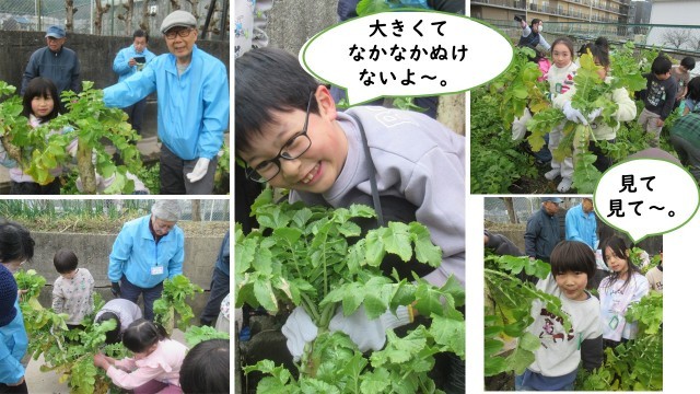 立派なダイコンとカブに成長したことに子どもたちはとても驚いていました。