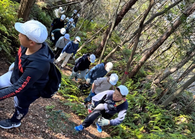 総合的な学習の時間の一環として、5年生が「みささぎの森」へ登山に出かけました。