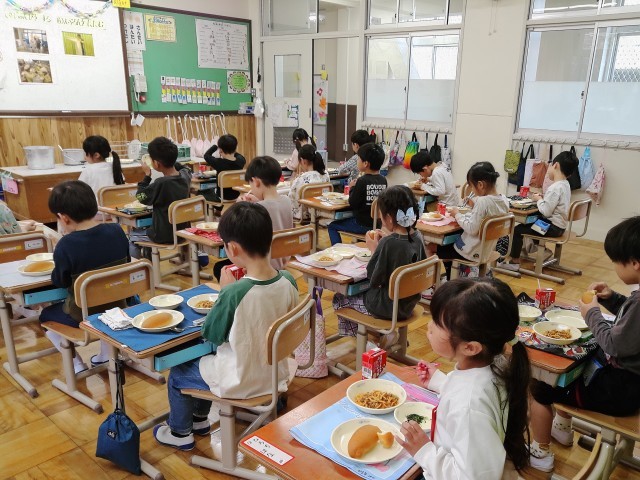 あたたかい給食はとてもおいしく、「おかわり!」の声を