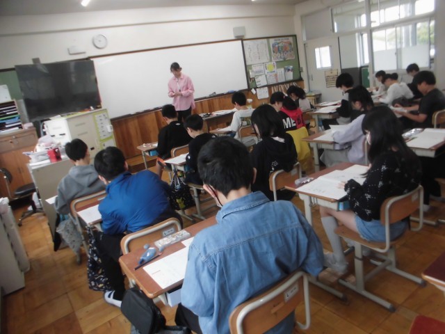 緊張する中、みんな真剣に国語科、算数科の問題にチャレンジしました。