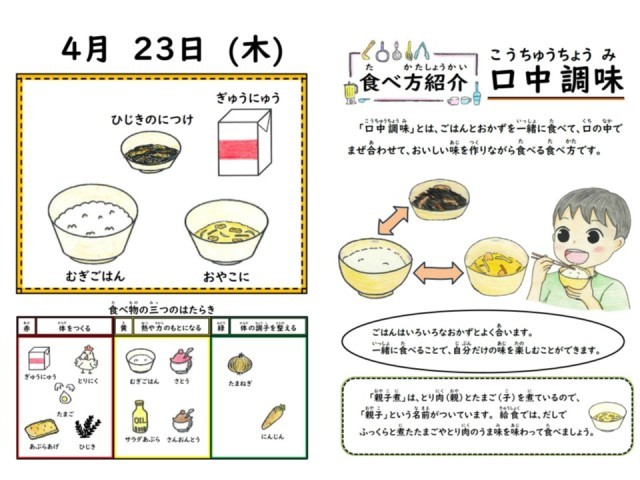 今日は給食カレンダーに「口中調味」の話が載っていたのですが、