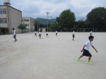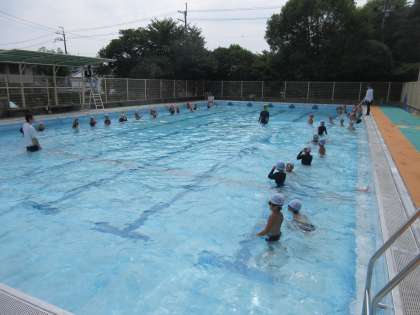 今日から,夏休みのプールが始まりました。みんな楽しく取り組んでいました。また,グランドでは,サッカー部が活動していました。先生たちと一緒にミニゲームをしました。
