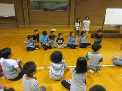 2日目の夜は,プレイホールでレクリエーションをしました。ジェスチャーゲームやハンカチおとし,リズムしりとりなどの遊びをして楽しみました。校長先生のスペシャルゲームもあり,おおいに盛り上がりました。これから,ふりかえりをした後,就寝準備をします。明日の最終日も頑張ります。