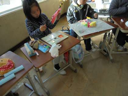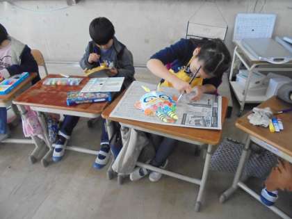 3年生は,図画工作科「おにのおめん」に取り組んでいます。それぞれの思いが込められた作品が,まもなく完成です。