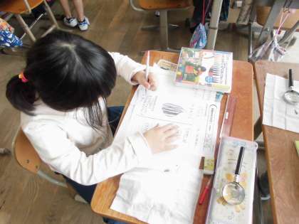 理科「植物をそだてよう」では,ヒマワリとホウセンカの観察から,「植物は種類によって育ち方に違いがあるのか」を調べています。今回はヒマワリとホウセンカの種をくらべて観察しました。大きさや色,形に違いがあるのかだけでなく,「種の先が少しとがっていること」などに気づく児童も見られました。今後は種まきを行い,植物の成長の様子を観察していきます。