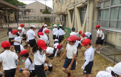 お米作りの学習が,いよいよ始まります。5月11日(金)には,土おこしをします。そのために,たくさん生えていた草を2年生みんなでぬきました!おいしいお米ができるように,みんなで一生懸命にぬきました!!