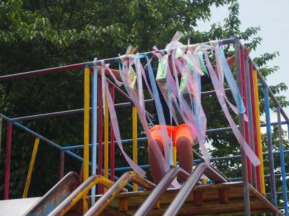 風を視覚化し,造形遊びをして楽しみました。