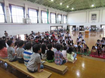 今日は,「1年生を迎える会」がありました。1年生は,6年生と手をつないで,にこにこ笑顔で入場しました。どの学年も,この日まで頑張ってきた成果を存分に発揮していました。1年生もとても上手な歌声で,校歌を披露していました。温かい雰囲気の中,とても楽しい会になりました。