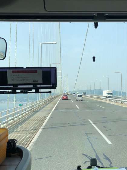 明石海峡大橋を渡り淡路島に到着しました。みんな元気です。