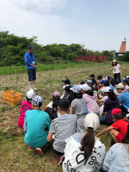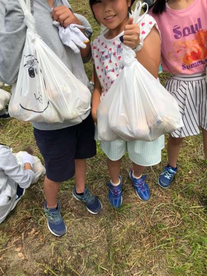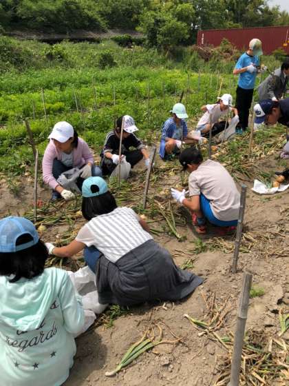 どろんこ体験。玉ねぎを無我夢中で掘り出しました。玉ねぎのおみやげを楽しみに待っていてください。