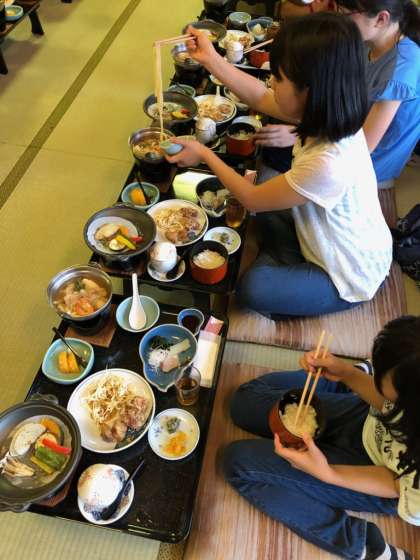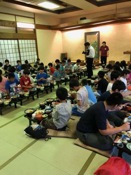 おいしい夕食を全員で食べました。午後7時から入浴,この後レクリエーションを楽しみます。