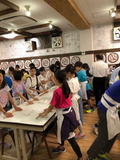 うどん作りの体験が始まりました!玉ねぎに続く,おいしいおみやげがまた一つ増えますね!