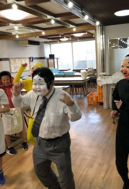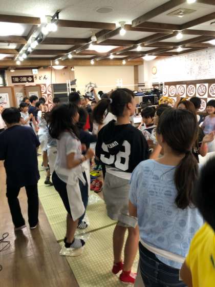 うどん打ち体験には,リズムと応援団が欠かせません。応援団はだれなのでしょうか?!お楽しみに!