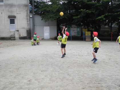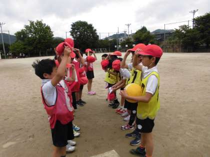 体育科では「ハンドベースボール」を学習しています。3年1組の様子です。ルールを確認し,本格的に試合がスタートしました。野球に似たハンドベースボールは,チームワークが大切なスポーツです。はじめとおわりのあいさつ,試合中の励ましの声かけなど,仲間との声かけを大切に学習していほしいと思います。