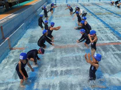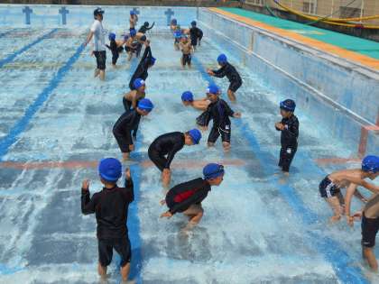 来週からは水位が上がり,水慣れだけでなく,少しずつ泳ぎの練習もしていきます。