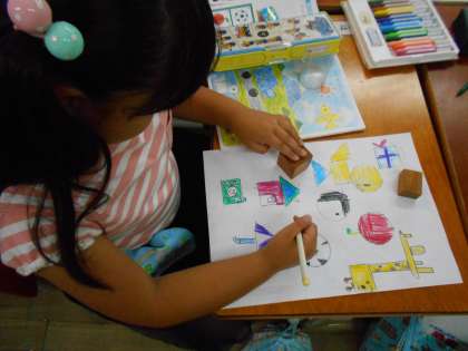 今日の算数は,いろいろな形を写し取って,お絵描きをしました。