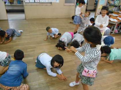 かたつむりになりきってゆっくり動いたり,「めだま だせ」と元気に歌ったりしていました。