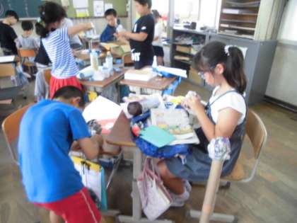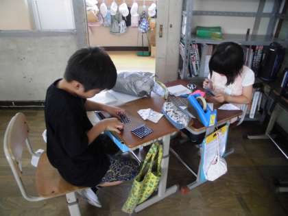 こども園との交流に向けて,仲良くなるための遊びを考えています。楽しく・安全に遊ぶためにいろいろな小道具を作っています。楽しんでもらえるように説明の練習もしています。