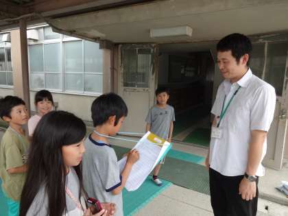 インタビューの前には,自己紹介やインタビューの目的を話し,インタビューの後には,しっかりとお礼を伝えていました。これから,インタビューやアンケートの結果をまとめて,記事を書いていきます。どんな新聞ができあがるのか楽しみです。