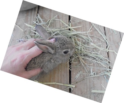うさぎのおちびちゃんは何しているのかな?ひなたぼっこしたり,えさをたべたり…。