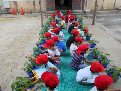 子ども達は,「はっぱが顔よりも大きくなるかも。」「僕の身長よりも高くなったらいいな。」などと話していました。
