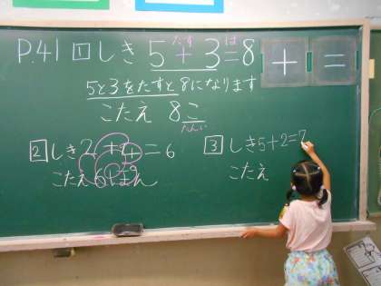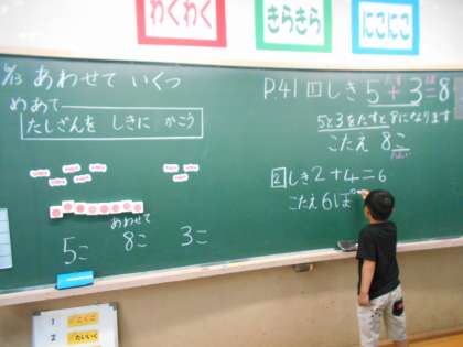 1年生の算数では,いよいよ「足し算」の学習が始まりました。