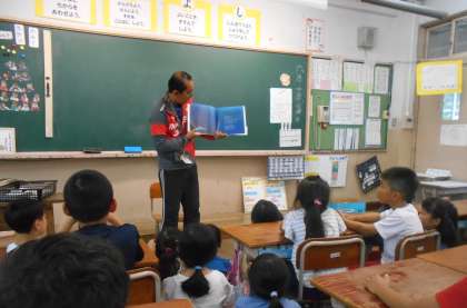読書週間ということで,朝のワクワクタイムの時間に教職員による読み聞かせがありました。