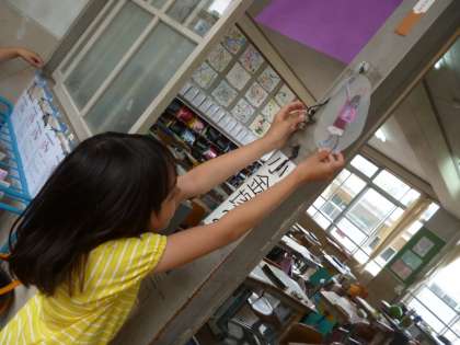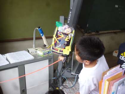図画工作「ここがお気に入り」の学習です。完成した小さな自分をお気に入りの場所にいき,みんなでその場所を鑑賞しました。本当に小さい自分になりたいと思う子もいて,とても楽しい学習になりました。