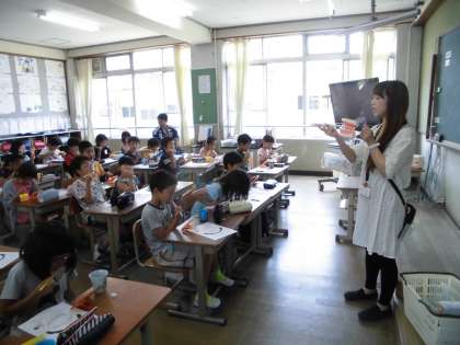 3年生では,6月25日(月)に,養護教諭と共にカラーテスターを使った歯磨き指導を行いました。普段は「ちゃんと磨けている」と胸を張っていた児童も,中々とれないカラーテスターを見て,「もっとちゃんとしよう」と考えるよい機会になりました。