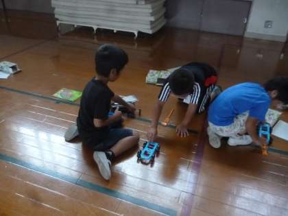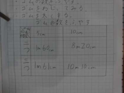 3年生では,理科「ゴムと風でものをうごかそう」の学習を続けています。今回は,ゴムを工夫して,ゴムの力で動く車を,より長い距離を走らせるならどうすればよいかを考えました。「ゴムの数を増やす」「ゴムを太くする」「ゴムをねじる」などの考えを,実際に実験して自分の予想が正しいかたしかめました。ゴムの性質を深く知る機会となりました。