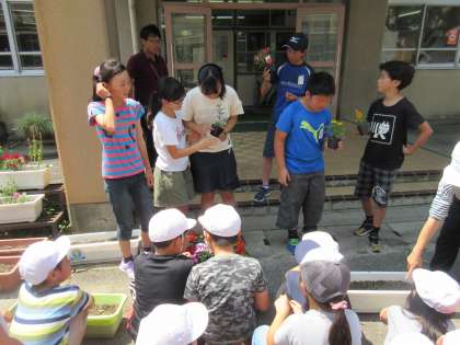 今日は,園芸委員会主催の「花いっぱい運動」を3年生が実施しました。いろんな種類の花の苗を植え,「きれいな花に育ってね。」という思いを込めて水をやりました。校庭がきれいな花でたくさんになるようにしっかりと水やりをしていきましょう。