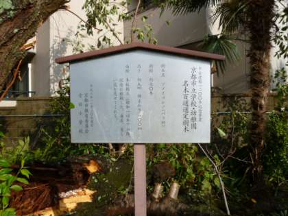 地域の方,卒業生,児童,保護者,教職員に愛され,親しまれてきた本校の北門にあるソメイヨシノが,この度の台風21号の被害にあい,残念な姿になってしまいました。これまで,音羽小学校の子どもたちを見守ってくれていたソメイヨシノに感謝の気持ち『ありがとうございました。』を伝えたいと思います。